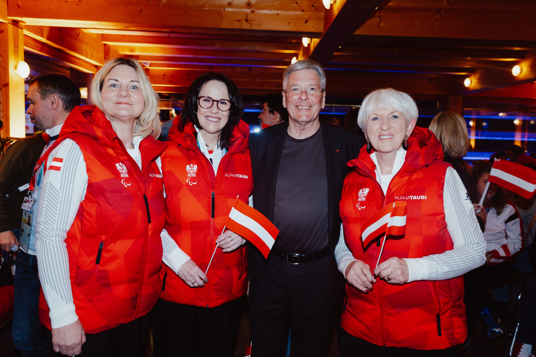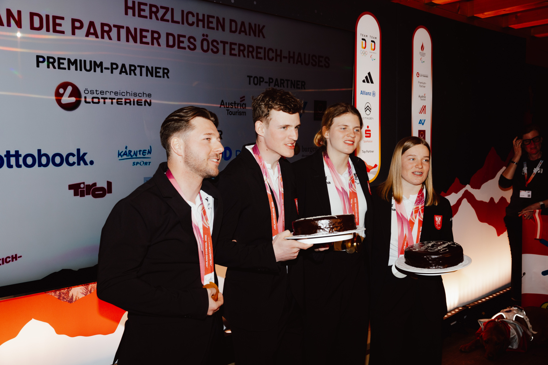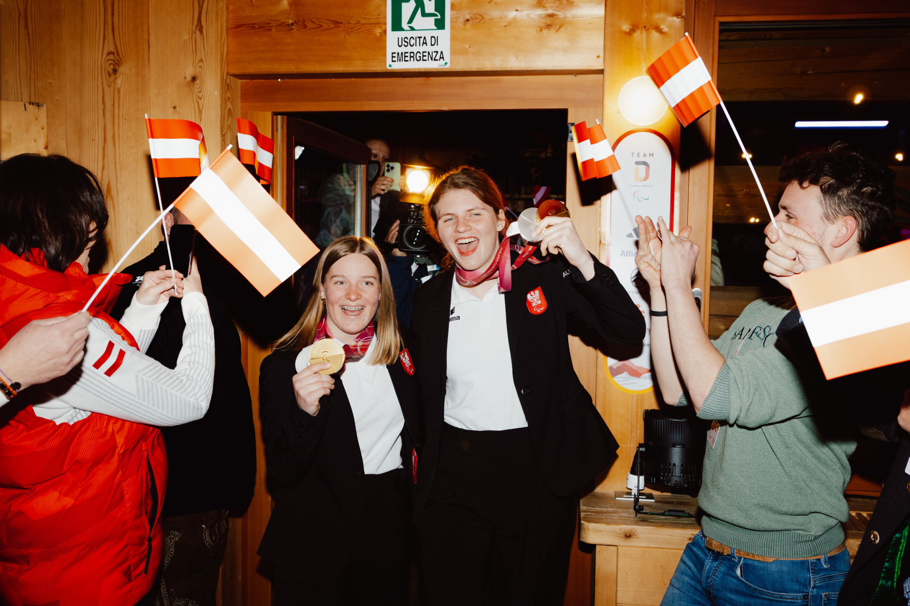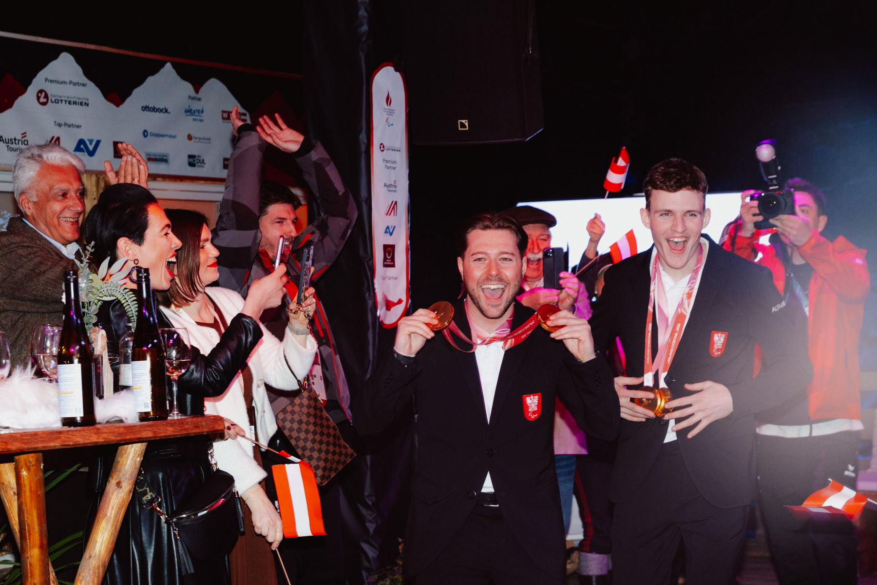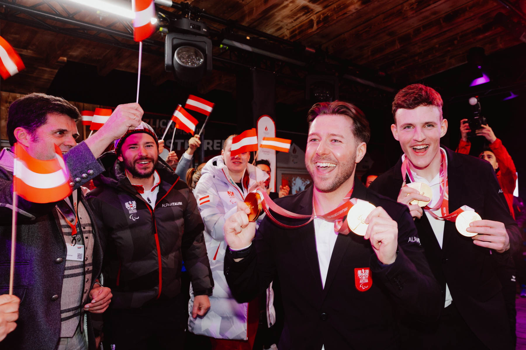 Am Montagabend wurde es im Österreich-Haus noch einmal laut: Veronika Aigner und Lilly Sammer sowie Johannes Aigner und Nico Haberl wurden nach Silber und Gold im Super-G feierlich empfangen und gebührend gefeiert.