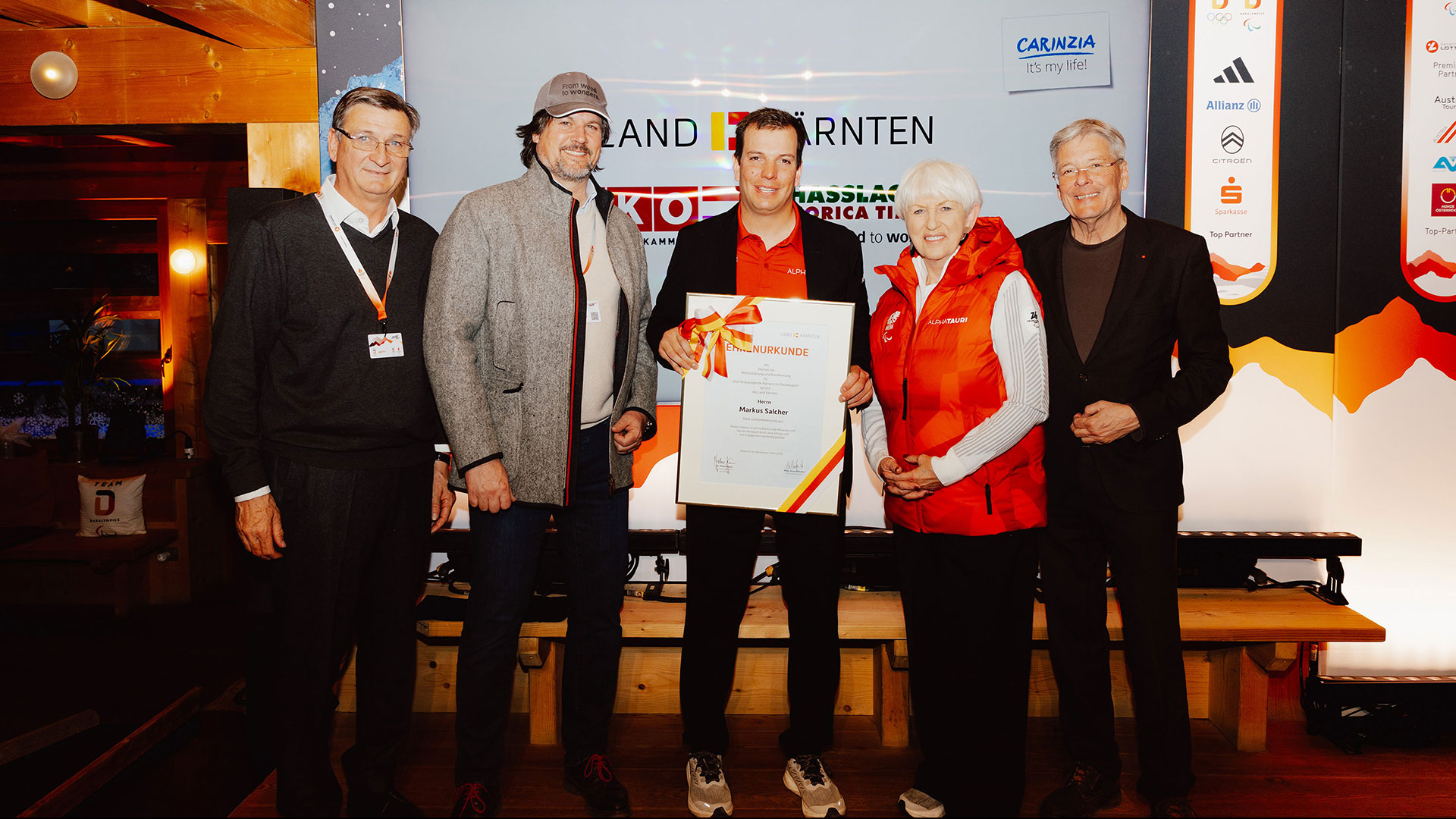 Salcher selbst hatte, wie schon bei den beiden Speedrennen, feuchte Augen. „Es ist einfach ein Wahnsinn, wie viele Leute hier waren und mich noch einmal angefeuert haben. Heute waren die Augen glasig vor Wut, aber es waren schon sehr emotionale Tage. Danke an alle, die mir immer die Daumen gedrückt haben, mich unterstützt haben – auch in schwierigen Zeiten. Ich durfte einige schöne Erfolge feiern und sie wurden noch schöner, da ich sie mit besonderen Menschen feiern konnte.“ Zum Abschluss gab es eine Ehrenurkunde vom Land Kärnten. Peter Kaiser: „Markus, du hast eigentlich schon alle Auszeichnungen erhalten, die es gibt. Aber wir haben noch einmal einstimmig beschlossen, dir diese Ehrenurkunde auszustellen.“