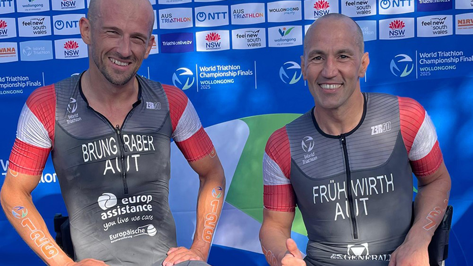 Thomas Frühwirth und Florian Brungraber ließen der Konkurrenz bei der Para-Triathlon-WM im australischen Wollongong am Samstagmorgen Ortszeit keine Chance und schreiben österreichische Sportgeschichte. Frühwirth sicherte sich nach 750m Schwimmen, 20km am Handbike und 5km am Rennrollstuhl vor Brungraber den Weltmeistertitel. Es ist dies nach 2010 sein zweiter.