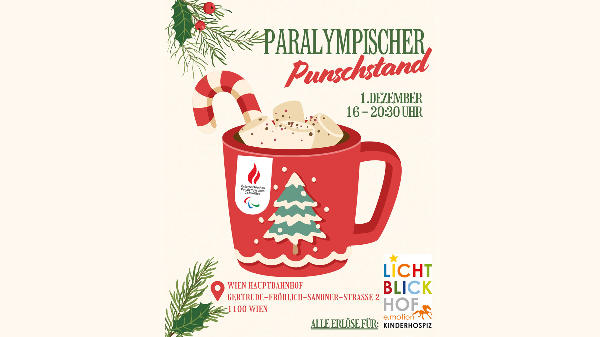 Am 1. Dezember wird es am Wiener Hauptbahnhof festlich: Das Österreichische Paralympische Committee (ÖPC) lädt gemeinsam mit seinem langjährigen Partner Allianz Österreich zum stimmungsvollen Punschstand ein. Zwischen 16 und 20:30 Uhr erwartet Besucher:innen nicht nur wärmender Punsch, sondern auch die Möglichkeit, Athlet:innen aus dem Paralympic Team Austria persönlich zu treffen.