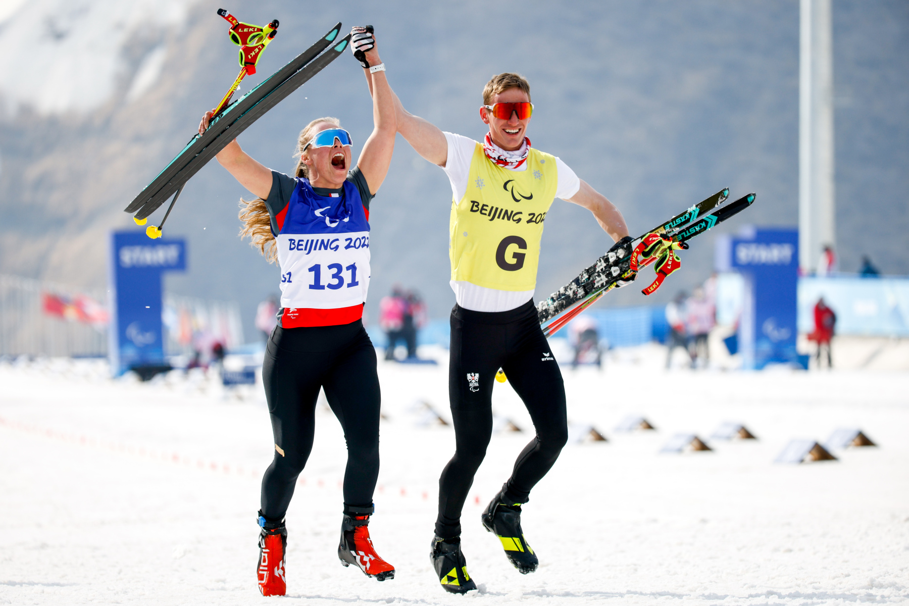 Langläufer:innen mit Seheinschränkungen bestreiten die Wettbewerbe gemeinsam mit einem Guide und tragen eine Augenbinde. Der vorausfahrende Guide hat die Aufgabe, den Athlet:innen durch möglichst genaue Ansagen, die Richtung zu weisen. So beschreibt dieser beispielsweise die Krümmung einer Kurve anhand des Ziffernblattes einer Uhr. Der Ruf „Links auf neun“ kündigt eine 90 Grad Kurve nach links an. „Rechts auf eins“ steht für eine leichte Kurve nach rechts.
